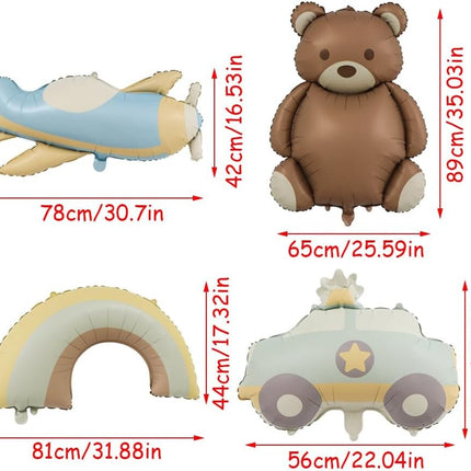 Embark on a delightful journey with our Adventure Awaits Balloon Set, featuring a cuddly teddy bear, a whimsical airplane and car, and a charming rainbow. This playful and imaginative balloon collection is perfect for any birthday party or baby shower, offering a sense of adventure and wonder. Set Includes: 1 PCS - 35 Inches Bear Balloon 1 PCS - 30Inches Airplane Balloon 1 PCS - 22 Inches Car Balloon 1 PCS - 31 Inches Rainbow Balloon 1 PCS - White Ribbon Note: Carefully inflate these balloons to bring the entire set to life, creating a joyful backdrop for photos and an interactive environment for play. Let the adventure begin with these adorable balloons that promise to make any celebration a memorable escapade!