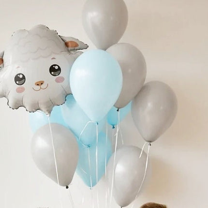 Float away on a cloud of cuteness with our Bubbly Sheep Balloon Set! This adorable balloon collection is perfect for infusing any birthday party or baby shower with a touch of soft, pastel charm. The centerpiece is a delightful sheep balloon, surrounded by a flock of harmonious blue and grey balloons. Set Includes: 1 PCS - 27 Inches Sheep Balloon 10 PCS - 10 Inches Grey Balloons 10 PCS - 10 Inches Light Blue Balloons 1 PCS - White Ribbon Note: When inflating your balloons, do so gently to maintain their perfect shape and ensure they float gently through your celebration. This Bubbly Sheep Balloon Set isn't just decorative—it's sure to be the cuddly centerpiece that brings a smile to everyone's face!