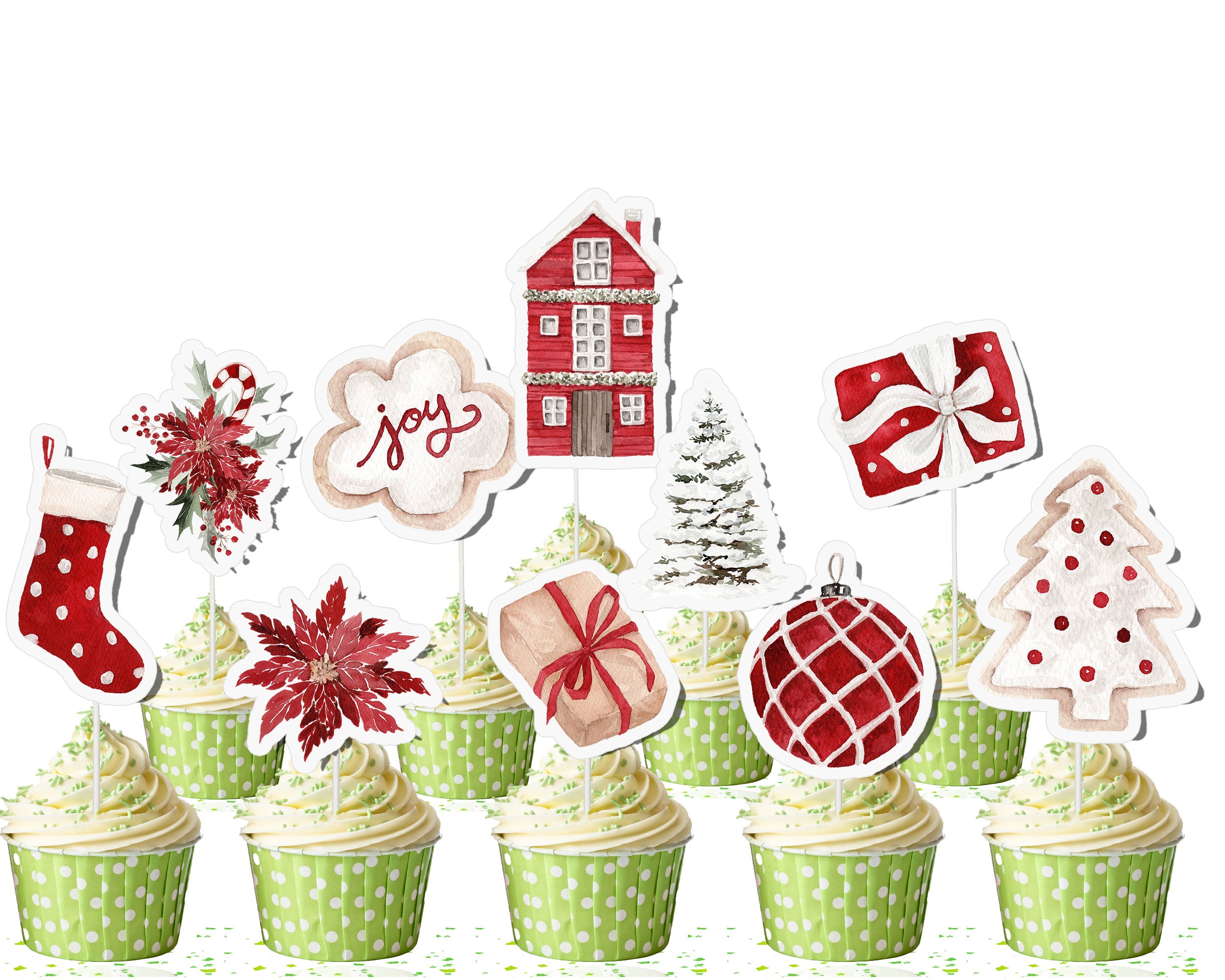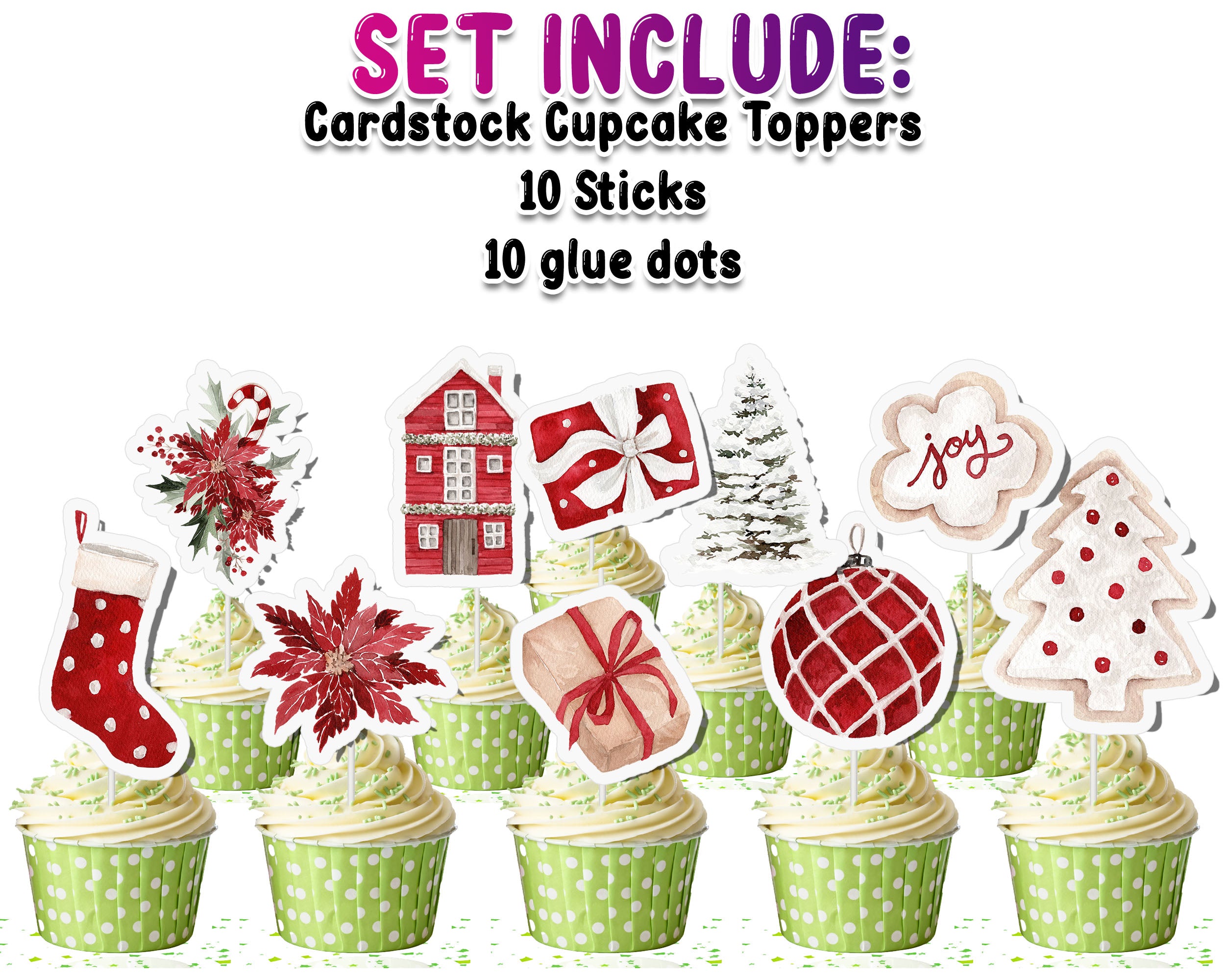 Bring the festive spirit to your desserts with these Christmas Cupcake Toppers! This set of 10 beautifully designed toppers features classic holiday elements like Christmas trees, stockings, gifts, ornaments, and more. These toppers are perfect for decorating cupcakes, cakes, and other sweet treats during holiday celebrations.